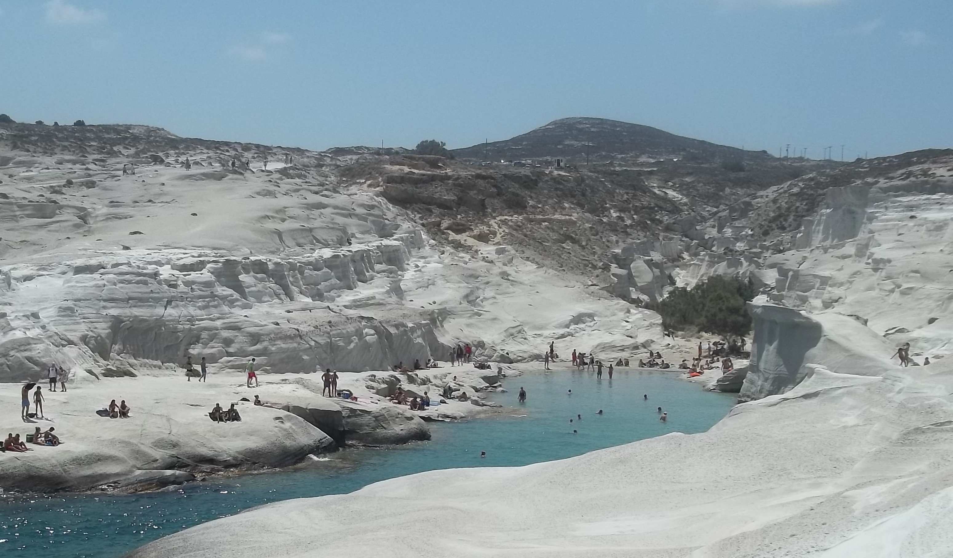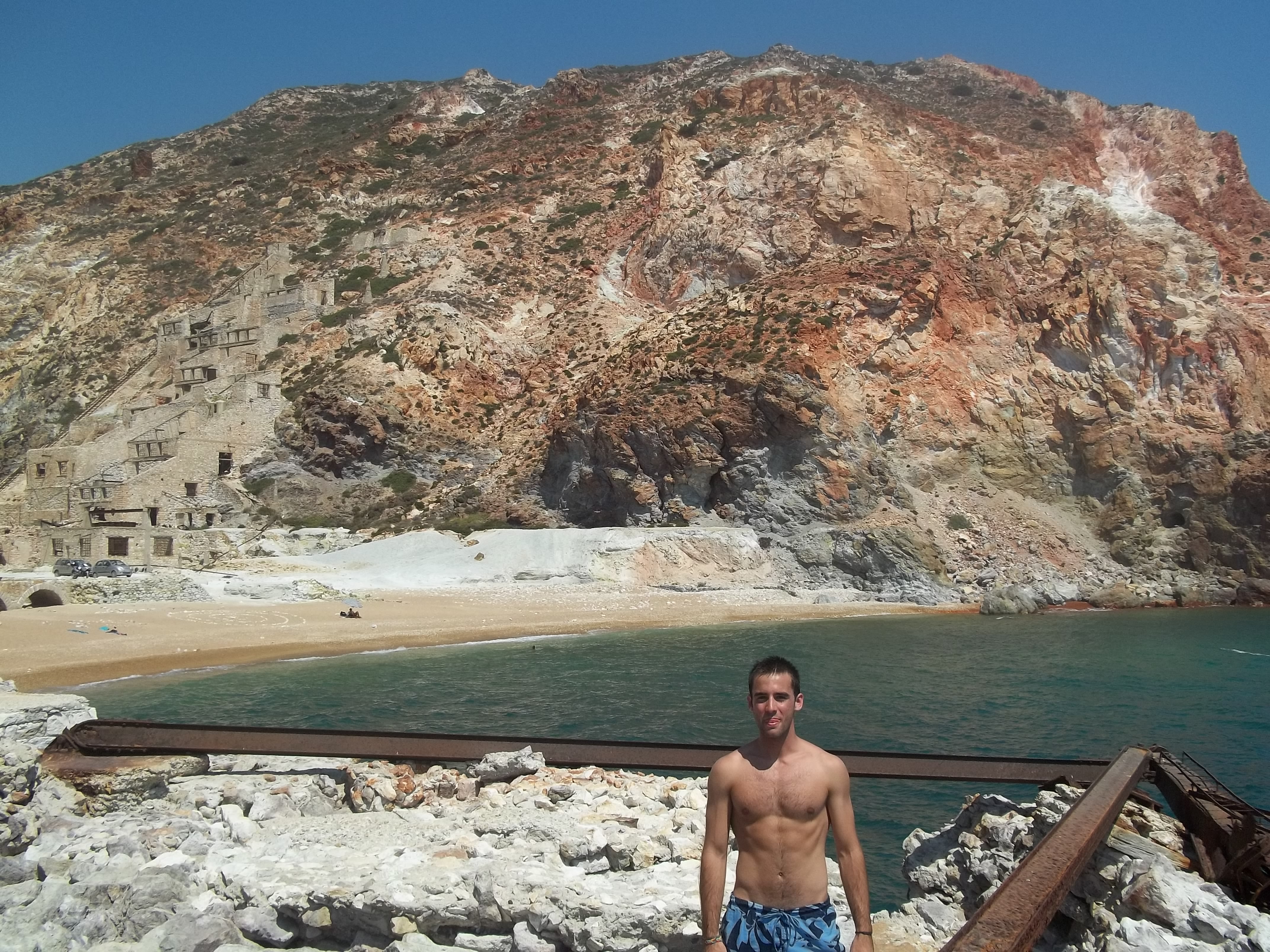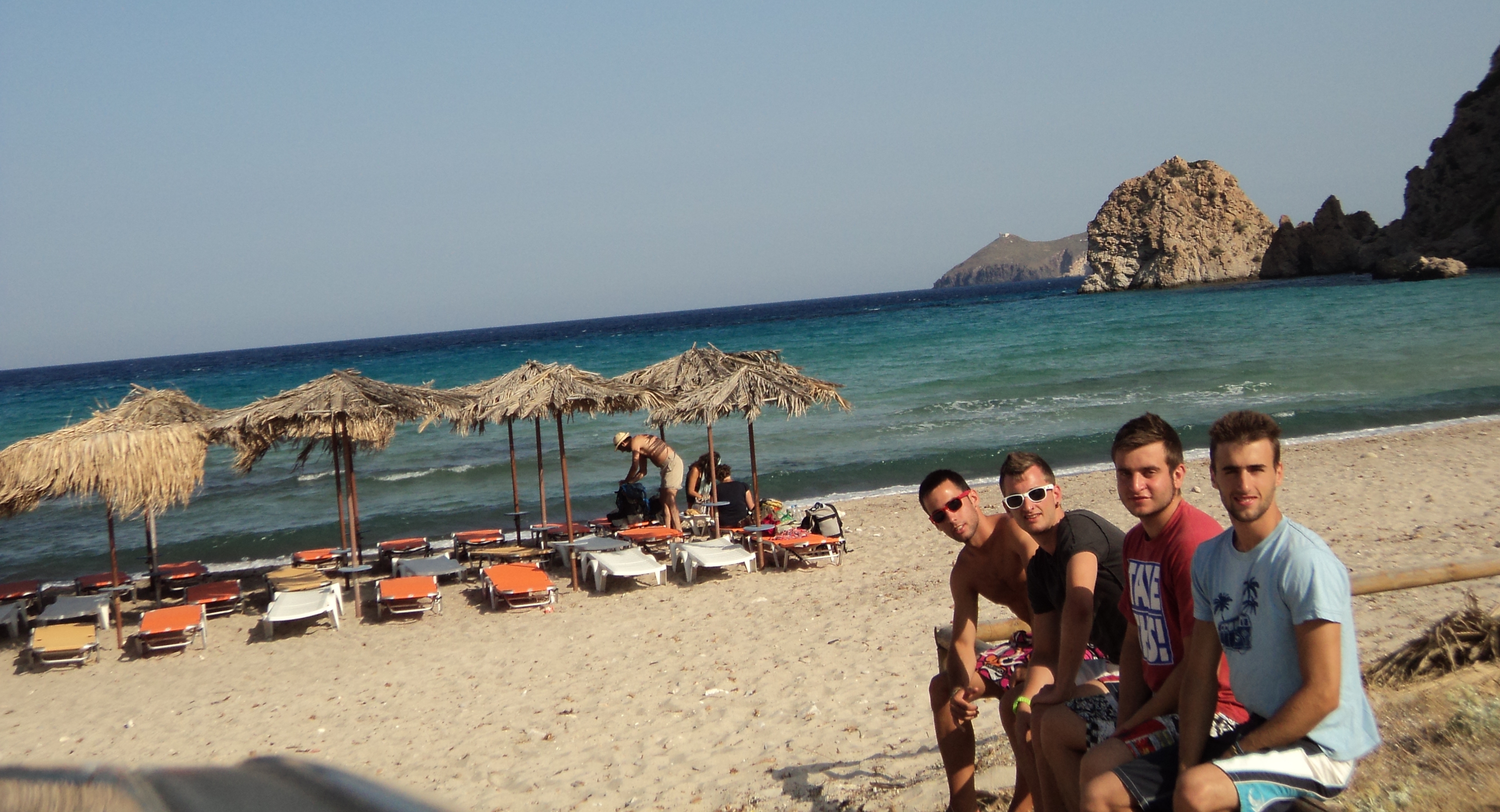 Como playa, es la mejor playa de Milos. Es de arena fina y se puede estar tumbado muy a gusto. El calor es extremo y el acceso «complicado», pero merece la pena. Al entrar al agua los pececillos nos mordían la piel.