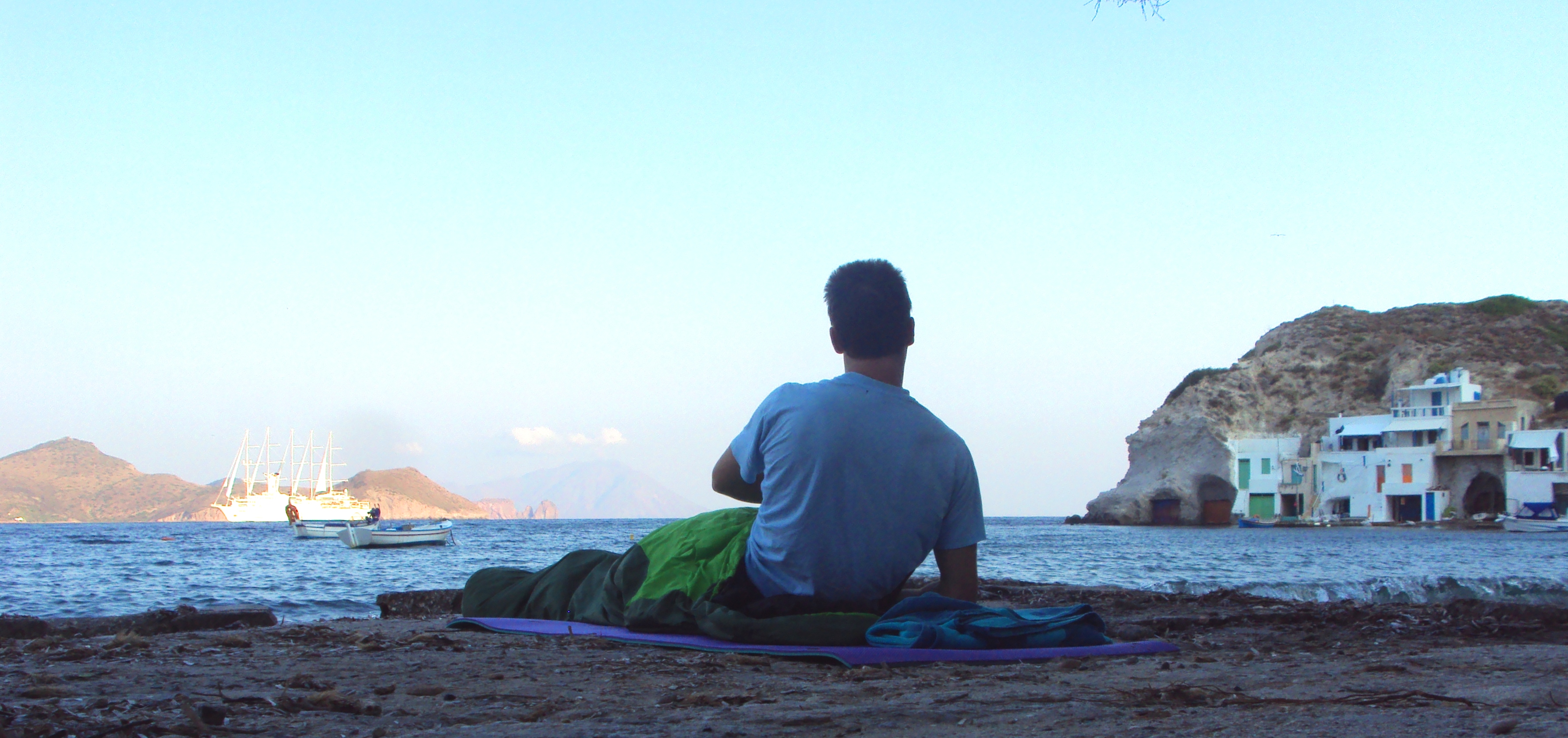 Íbamos sin tienda de campaña, con sacos de dormir de verano; de los finos y compactos que venden en Decathlon. No pasamos frío, era suficiente. Hacer camping en Milos o hacer acampada libre en Milos no creo que esté permitido, eso sí que puede dar más problemas si os pillan y tal. Nosotros aprovechábamos las hamacas de la playa para dormir, y cuando no había o no se podía por lo que fuere, en la arena, poniéndo en saco sobre la arena. Una vez nos acogió un señor, y nos dejó dormir en el porche de la casa de su vecino jajaja